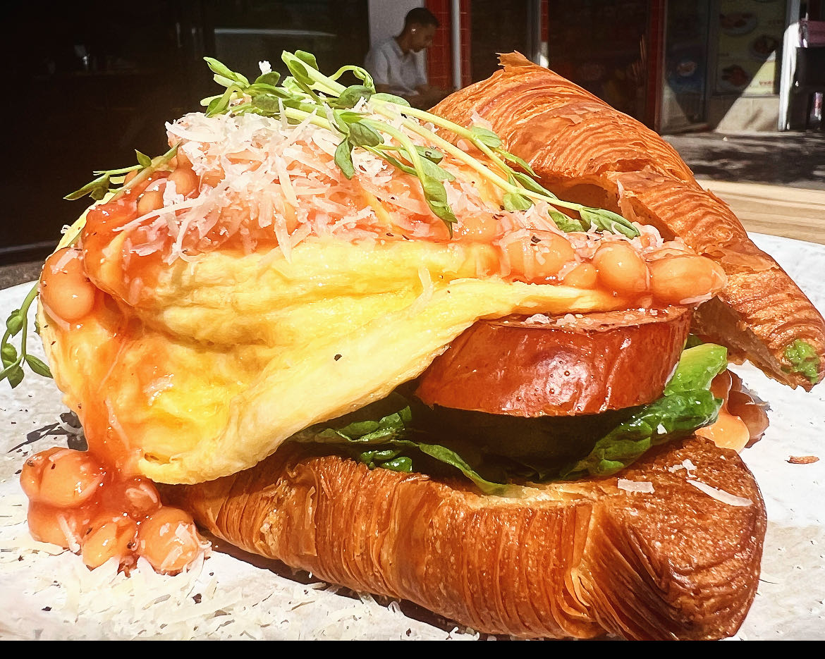 If you seek something a bit more decadent, the Deluxe Croissant won’t disappoint. This fluffy, buttery delight is filled with scrambled eggs, avocado, and parmesan cheese, accompanied by sautéed spinach and baked beans. Upgrade your experience with chorizo or halloumi for A$23.90—a perfect way to kickstart your day.